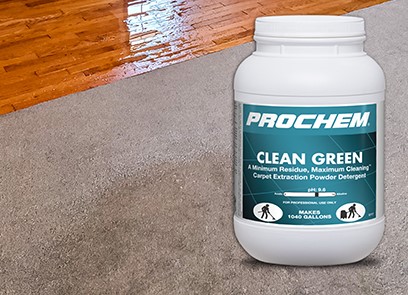 Prochem Clean Green uses nonionic surfactant technology so exhibits excellent low foaming characteristics. Clean Green's low-foam technology means less water needed to rinse, plus no vacuum loss in your extraction system.